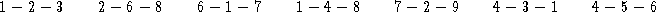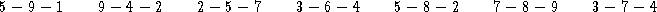 461. Первый игрок (A) всегда может выиграть, но для этого он должен начинать с 4. Во время игры нужно последовательно набирать такие суммы очков: 4, 11, 17, 24, 30, 37. Ниже приводятся три партии. В первой из них второй игрок (B) оттягивает насколько возможно свое поражение. Во второй игре он не дает A набрать ни 17, ни 30, но последнему удается набрать 24 и 37. В третьей игре B не дает A набрать ни 11, ни 24, но последний набирает 17, 30 и 37. Обратите внимание на важные ходы 3 и 5.