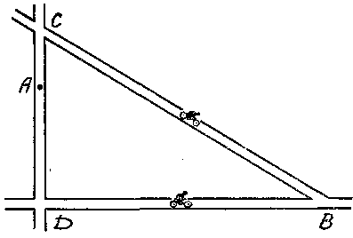 9. Два землекопа. Эта любопытная задачка в действительности труднее, чем может показаться на первый взгляд. Абрахам, хилый старик, подрядился выкопать канаву за 2 доллара. Он нанял Бенджамина, здоровенного парня, чтобы тот ему помог. Деньги они должны были поделить в соответствии с «копательными» способностями каждого. Абрахам копает так же быстро, как Бенджамин выбрасывает грунт, а Бенджамин копает в четыре раза быстрее, чем Абрахам выбрасывает грунт.