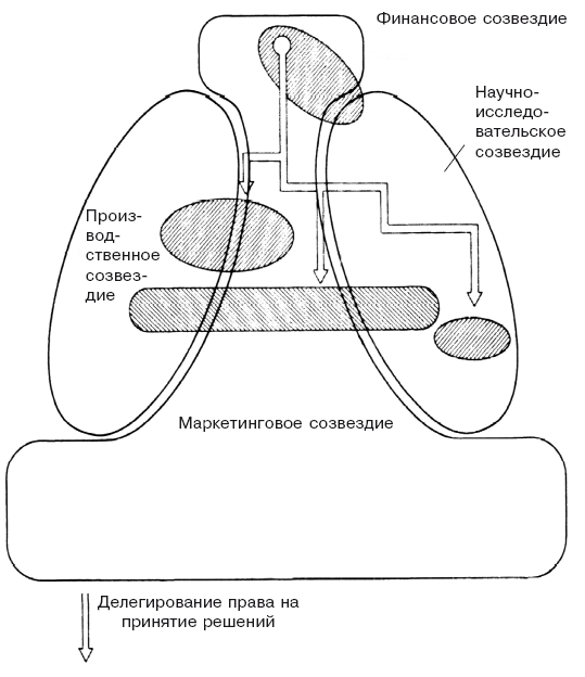Но, когда потребность в структурном изменении наконец признана, организация начинает переход, возможно, постепенный, что позволит смягчить удар. Мы наблюдали это на примере механистической бюрократии, которая диверсифицирует свою деятельность шаг за шагом, сначала приняв гибридные формы производства побочных и взаимосвязанных продуктов, а затем продвигаясь к чистой дивизиональной форме. Но некоторые организации так никогда и не завершают переход, оставаясь на промежуточном этапе, в гибридном состоянии, поскольку испытывают воздействие противоречащих друг другу сил – новые призывают к переменам, старые требуют сохранения существующей структуры. Поэтому многие корпорации постоянно производят побочные или взаимосвязанные продукты: они диверсифицированы, но между их товарными специализациями остаются зависимости. Но если изменения наметились, переход лучше всего осуществлять быстро и решительно. Колебания между двумя конфигурациями – старой, уютной, но уже никуда не годной, и новой, непонятной, но жизненно необходимой – порождают своего рода организационную шизофрению, которая может оказаться разрушительнее всех прочих состояний.