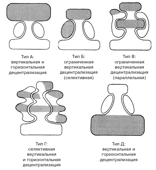 В зависимости от того, как происходит тот или иной выбор, получаются разные конфигурации – в принципе, возможны многочисленные варианты. Но на практике, и мы это покажем, число эффективных для большинства организаций конфигураций не столь уж велико. Лейтмотивом данной книги является мысль о том, что за большинством тенденций, которые подталкивают эффективные организации к выбору той или иной структуры, стоит ограниченное число конфигураций. Другими словами, построение эффективной организационной структуры – а в общем, и диагностика проблем многих неэффективных структур – приводит к рассмотрению всего нескольких базовых конфигураций.