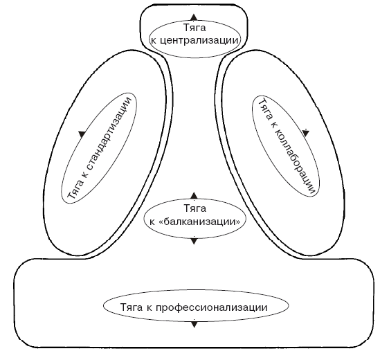 Конечно, некоторые организации начинают жизнь с профессиональной бюрократии, подражая структуре других, зрелых профессиональных организаций. Часто они навсегда сохраняют эту структуру, если изменение профессиональных задач или внешний контроль не приведет их в конечном счете к механистической бюрократии. Кроме того, в связи с новой динамикой внешней среды у профессиональных операторов может возникнуть желание больше экспериментировать, что приведет организацию к адхократии.