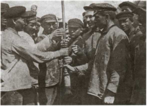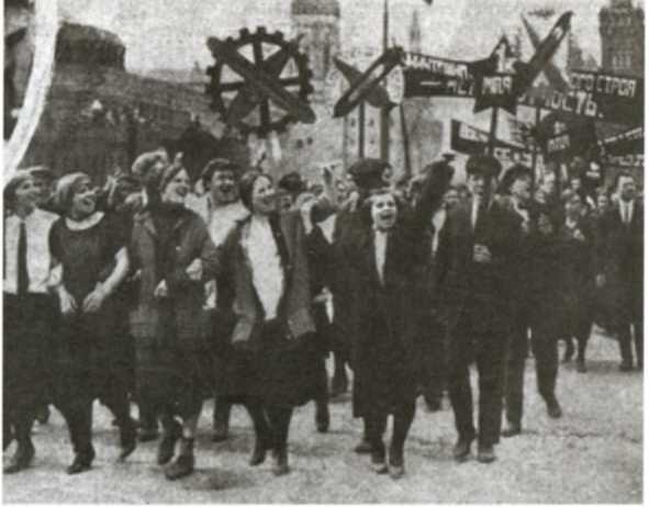 Вершиной праздника был, конечно, военный парад. Как он выглядел? А вот как. На Красной площади построились воинские части… В одиннадцать часов прибыл Троцкий и прозвучала команда «смирно!». Главвоенмор начал обходить войска. Без лошади или машины, пешком. Он подходил к воинским частям и здоровался с красноармейцами. «Гремела музыка, приветствующая, — как писали в то время газеты, — вождя Красной армии». Долго не смолкало над площадью восторженное «ура!». Закончив обход, Троцкий поднимался на построенную по такому случаю трибуну. За ним следовали зампред Совнаркома Каменев, председатель Коминтерна Зиновьев, член Коминтерна и зампред ВЦИКа П. Г. Смидович и др. По толпе проносился шепот: «Троцкий будет говорить». Троцкий «оглядывал площадь орлиным взглядом», а потом говорил о наших победах и достижениях, высмеивал английского премьер-министра Ллойд Джорджа, призывал укреплять мощь страны и т. д. После его речи начинался парад. В небе над площадью летали сорок аэропланов. Сначала они покружили над головами присутствующих, вызывая их восторг, а потом унеслись вдаль, как стая гусей. А по брусчатой мостовой зацокали копытами гнедые лошади кавалеристов, прогрохотали тачанки с пулеметами на деревянных сиденьях. У артиллеристов все лошади оказались серыми. На одних гарцевали всадники, другие тащили пушки. Прошли по площади курсанты высшей стрелковой школы, школы связи, школы военной маскировки, Академии Генерального штаба. Держа винтовки со штыками «на руку», прошел первый образцовый полк Пролетарской дивизии. За ним, чеканя шаг, протопали моряки, все в черном, потом газовая команда с противогазами вместо винтовок и одетые в кожу представители войск связи с антеннами радиостанций. Пулеметчики протащили по площади пулеметы и, наконец, проехали по ней два броневика: «Степан Разин» и «Емелька Пугачев» и два трактора-фордзона, тянущих пушки. Замыкали шествие войска всевобуча. В первые годы советской власти на пальцах некоторых командиров еще сверкали золотом обручальные кольца. То были офицеры царской армии, перешедшие на службу революции. Мимо мавзолея командиры проходили с саблей наголо, а пройдя его, сабли опускали. Парад длился часа полтора и доставил зрителям немало удовольствия. В начале второго на площади появились колонны трудящихся, началась демонстрация. Когда прошли колонны рабочих, на площадь в грузовиках вывезли детей из детских домов (в 1921 году это были дети голодающего Поволжья). На красном знамени, что вез по площади один из грузовиков, были написаны такие слова: «На смену старшим, в борьбе уставшим, молодая рать идет». На другом грузовике надпись: «В прошлом страдания, невзгоды. Радостный путь впереди». После детей по площади провезли инвалидов и жителей работных домов. Государство позаботилось об увечных и престарелых. Учащиеся ронесли по площади лозунги «Вооруженные знаниями, мы завоюем мир» и «Мы дадим Советской России сотни красных спецов».