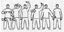 Например, рукопашную подготовку «силовиков» целесообразно проводить в условиях, максимально усложняющих применение приемов боя — на неровной поверхности, при плохой видимости (в лесу, в развалинах, под дождем, в условиях задымления), с превосходящим по силе и численности противником и т. д.