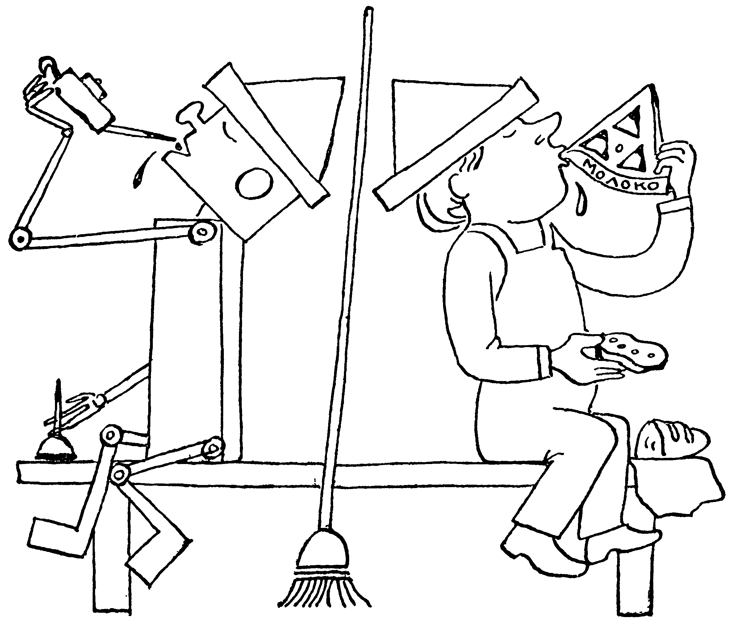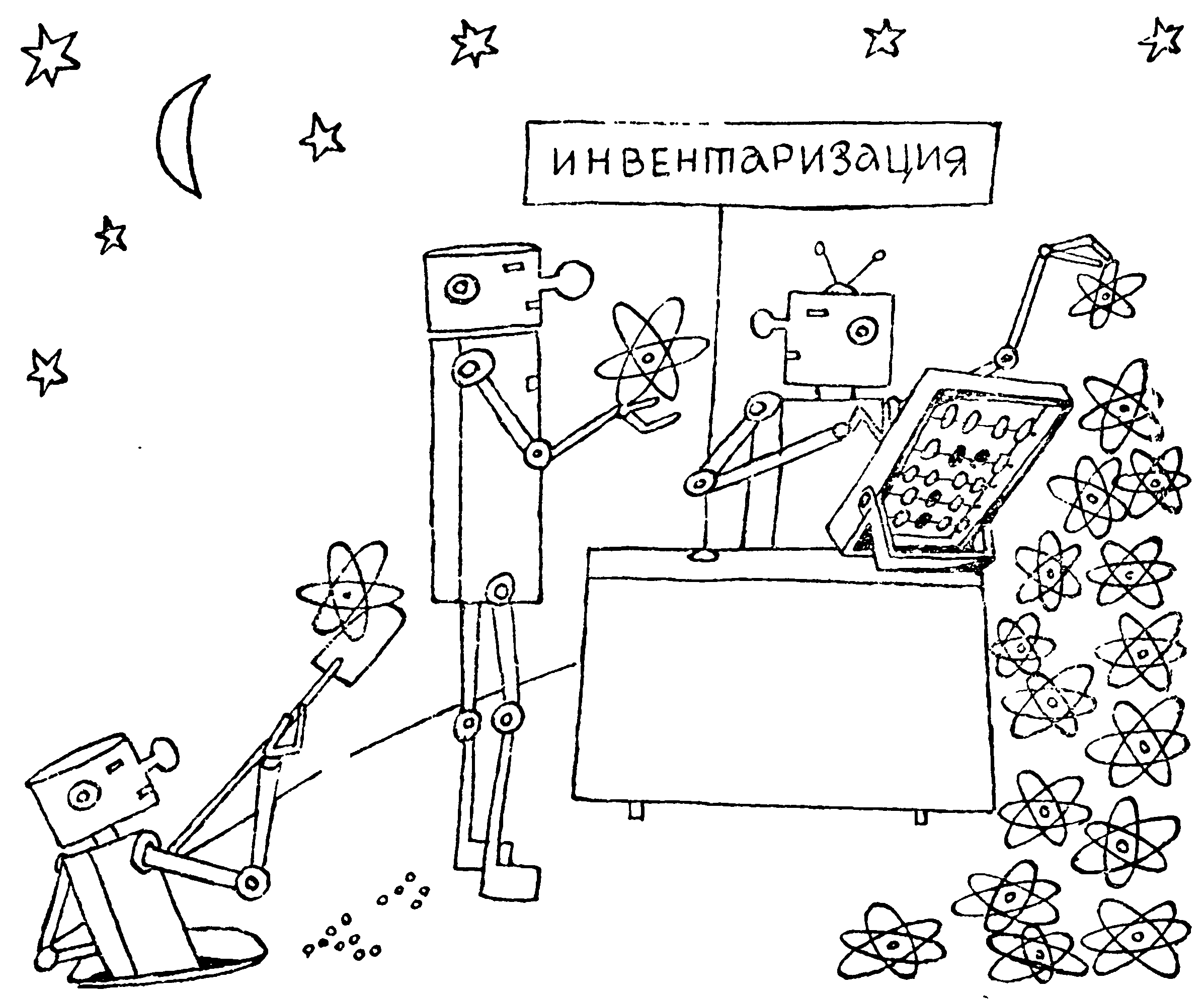 Л. Постойте, одну минуту! Разве на вашем полностью автоматизированном заводе установлены только вычислительные машины? Они ведь все делают только "в уме". А вы говорили, что у вас все делается всерьез и ни о чем не надо уславливаться.
