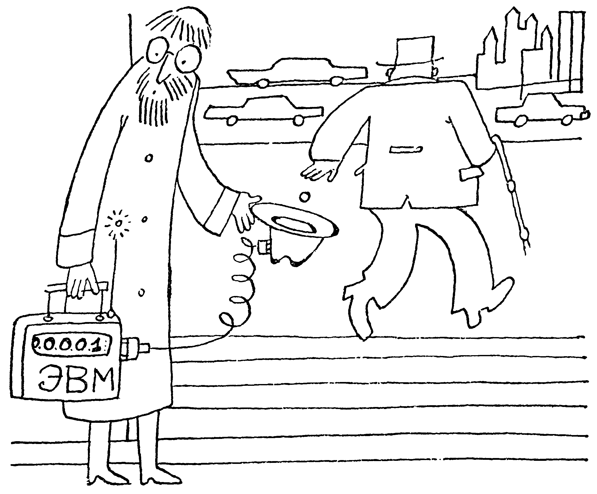И. И. Строго между нами, Вася, антр-ну, как говорят у нас в лаборатории! Мой коэффициент — 120. Я совершенно на равных общаюсь со всеми нашими кибернетиками. Они знают, о чем меня спрашивать, я знаю, что им отвечать. То же самое бывает, когда я их спрашиваю, а они должны отвечать. Все происходит очень просто и совсем неинтересно.