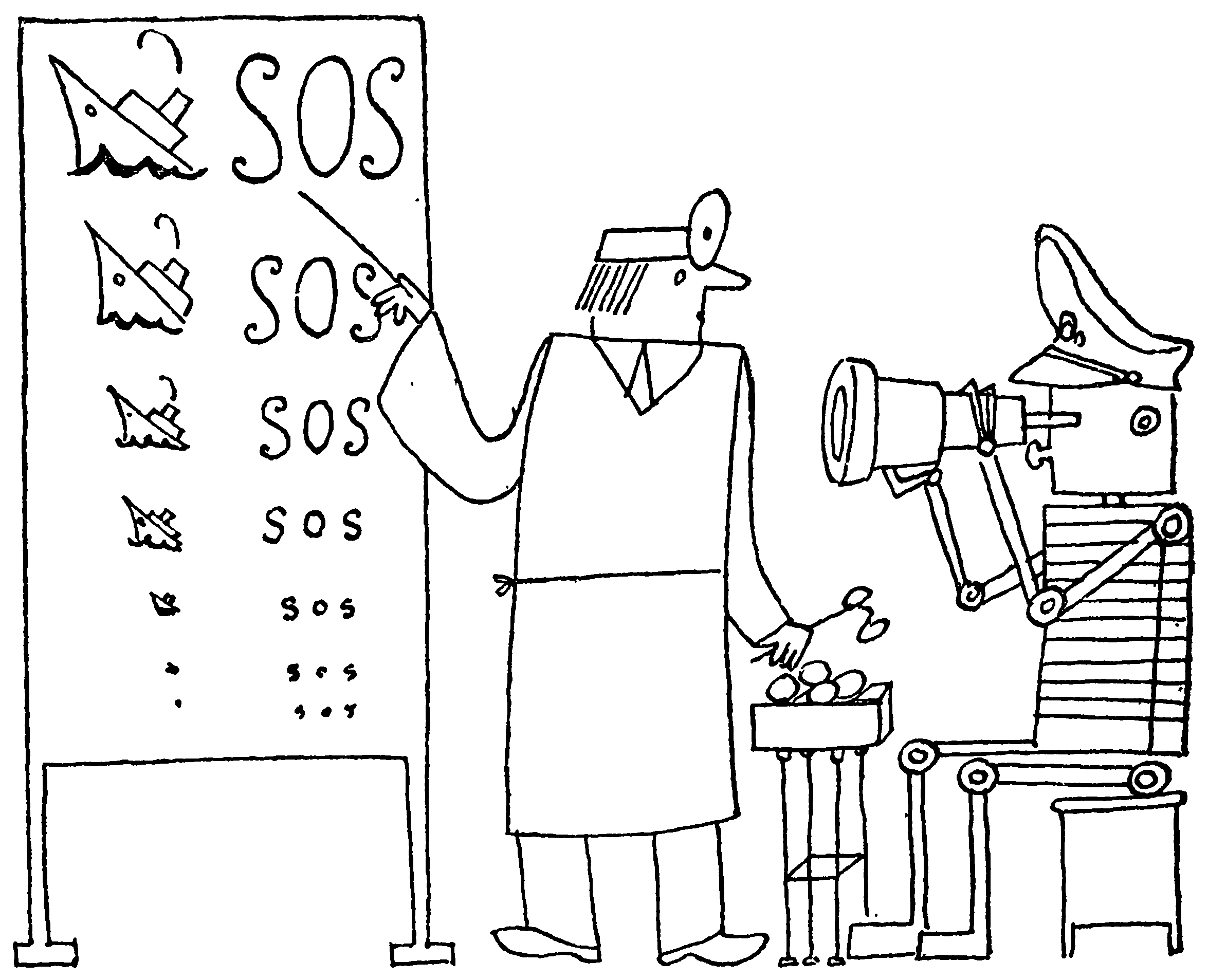 Были составлены описания нескольких различных систем, которые в современной научной и технической литературе фигурируют под кличкой "робот". Затем эти описания предъявили экспертам, подобно тому как древнеримская женщина предъявляла своего схоласта проходящим мимо окна, с тем же вопросом: "Да или нет?"