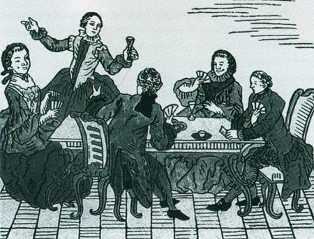 В самой России склонны были считать пьяницами соседей — немцев и поляков. В землеописаниях-«космографиях» XVII столетия встречается оценка «земли Германии»: «Человецы ласковы, и смирны, и слабы ко пианству и к покою телесному». Неоднократно переиздававшаяся в XVIII—XIX веках «Опись качеств знатнейших европейских народов» отмечала французскую «учтивость» и английскую «набожность» и указывала, что «немец пьет много, а ест мало»{5}. Петровский дипломат и вельможа Петр Толстой, направляясь в 1697 году через польские земли в Италию, посчитал необходимым отметить «пьяную глупость поляков», которые, «когда напьютца пьяни, не тужат о том и не скорбят, хотя б и все сгибли»{6}.