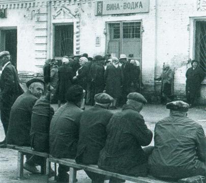 В очереди за водкой у ленинградского магазина.