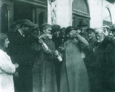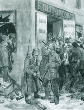 Рабочие и солдаты грабят винный магазин. Петроград.