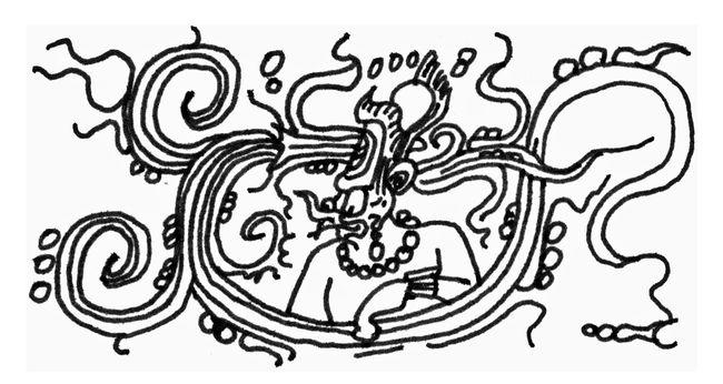 And so The Popol Vuh (Book of Council, Book of the Dawn of Life) was copied for posterity and translated into Spanish. Father Ximénez, an accomplished linguistic and student of Mayan grammar, was well suited to the task. The original manuscript that he worked from was written in the 1550s. Some scholars believe that the Maya elders who did it were drawing from an older hieroglyphic book.6 Certain mythological scenes and deities found in The Popol Vuh are also portrayed on ancient carved monuments at early Maya sites dating back more than 2,100 years, suggesting that an ideological gold mine of great antiquity was preserved in the ancient text.