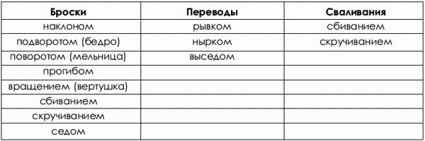 ? перебрасывания (отрывание противника и сбрасывание);