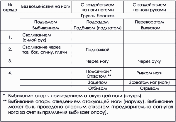 Эта классификация техники дзюдо в 1932 году была трансформирована прародителем борьбы самбо в СССР В. С. Ощепковым для нужд борьбы самбо (схема 1.2).