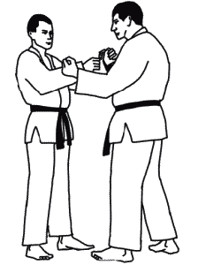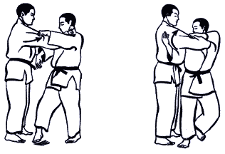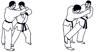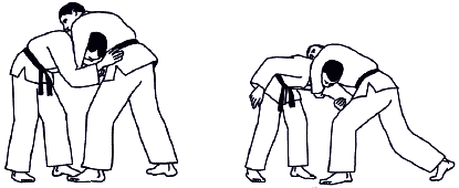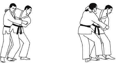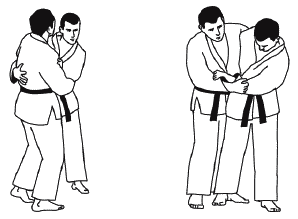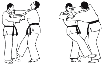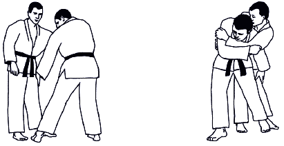 При борьбе стоя схватка может какое-то время проходить без захвата. Большая часть времени проходит в условиях взаимных захватов одной или двумя руками (схема 1.7).