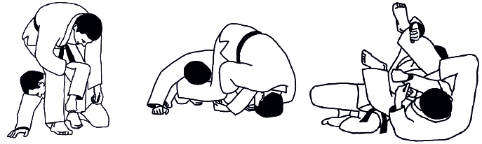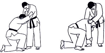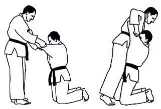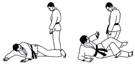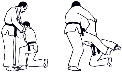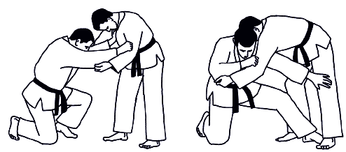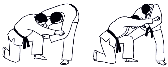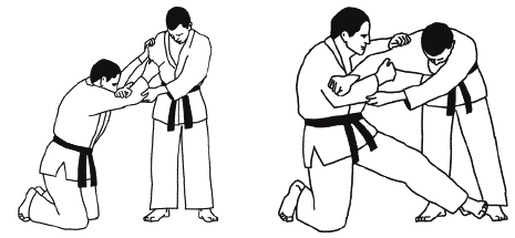 В этом разделе борьбы возможны положения: атакующий стоит, а его соперник на коленях (колене) – символ; атакующий на коленях, а соперник в стойке – символ. Захваты осуществляются на средней и дальней дистанции.