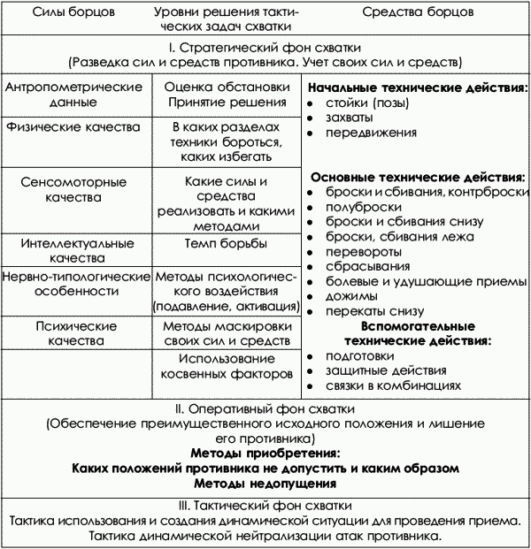 По требованию времени необходимо было создать единую классификацию техники спортивной борьбы, в которой бы на верхних иерархических уровнях учитывались общие для всех видов борьбы признаки.