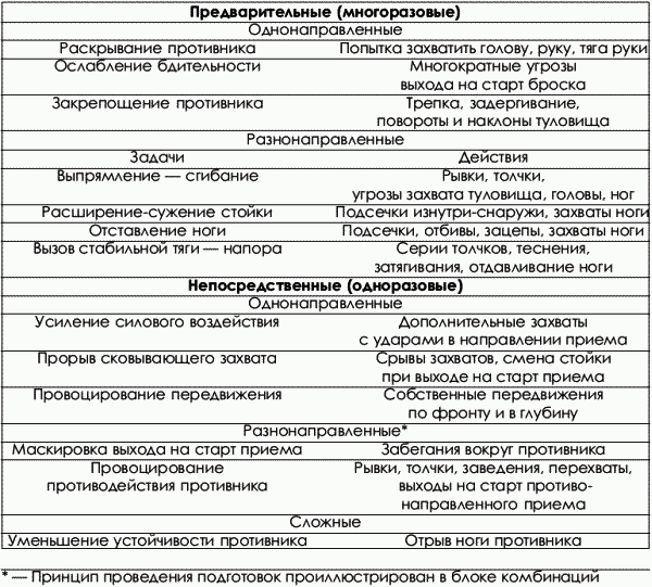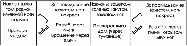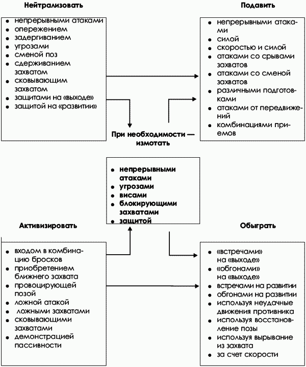 Во втором случае борец, владея приемами только из одной классификационной группы, покрывает этой техникой три технико-тактических направления (рис. 1.2).