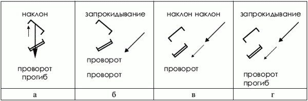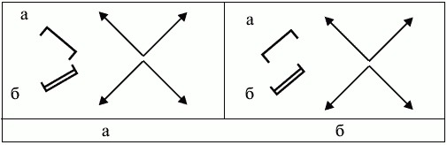 Сочетания взаимных стоек в проекции на горизонтальную плоскость и их символы