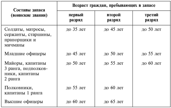 2. Граждане женского пола, пребывающие в запасе, относятся к третьему разряду: имеющие воинские звания офицеров пребывают в запасе до достижения ими возраста 50 лет, а остальные – до достижения ими возраста 45 лет.