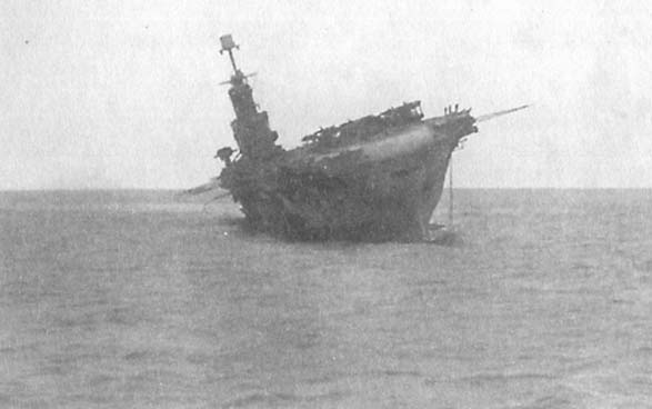 Капитан 1 ранга Монд решил, что еще имеется шанс спасти корабль, поэтому он задержал на борту авианосца людей, которые должны были вести борьбу за живучесть.