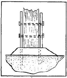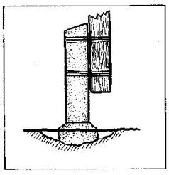 Столбы ошкуривают начисто, запиливают на два ската. «Земляную» часть столба обрабатывают по-разному. Можно ее обуглить на костре, промазать поверхность горячим гудроном (варом), оклеить двумя слоями рубероида (толя) на горячей или холодной мастике.
