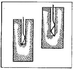 Несколько хуже действует раствор железного или медного купороса, при этом на 1 массовую часть купороса берется 10 частей воды. Каждый столб должен простоять в такой ванне не менее 2 сут. Затем его сушат 3 – 5 сут. После этого всю «земляную» часть и несколько выше промазывают горячей смесью гудрона и солярки в соотношении 1:1 (по массе).