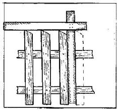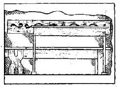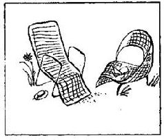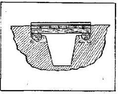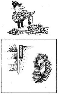 Для организации дрен на дно вырытых канав ровно без пропусков закладывают хворост, фашины из ветвей, камни слоем толщиной 20 – 25 см. (Перечисленные материалы можно заменить деревянной трехгранной трубой из досок. В нижней доске трубы (основания) делается два ряда отверстий диаметром 20 мм с шагом 25 – 30 см). Сверху хворост, камни или трубу плотно без пропусков закладывают дерном и засыпают грунтом.