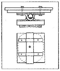 Если на участке электричества нет, воду в бочку подают ручным насосом, располагаемым радом с колодцем. Бочку вместимостью 200 – 300 л устанавливают на башне из четырех столбов высотой 2,5 – 3 м. Верхнюю площадку укрепляют, как это показано на рис. 63. Кроме этого, башню усиливают раскосом из стального уголка, все детали раскоса надежно склепывают.