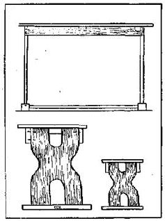 Стол и табуретки делают таких размеров, чтобы табуретки попарно убирались под стол (рис. 54).
