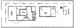 Хозблок представляет собой домик легкой конструкции размером 6x3 м. Стены домика из шпунтованной доски толщиной 25 – 30 мм, крыша односкатная. Как уже говорилось, домик включает в себя одинаковые по площади помещения: веранду-столовую, кухню с горячим душем и сарай.