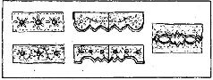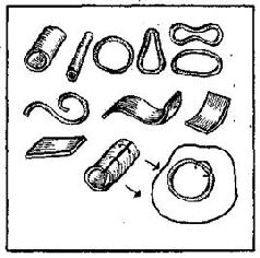Несколько слов о выжигании рисунков с помощью шаблонов, которые делают из подходящих по диаметру медных или латунных трубок длиной 4 – 6 см. Можно шаблоны изготовить и из металлических полос, скрепив их проволочными скобками (рис. 61). Рабочие кромки шаблонов в случае необходимости обрабатывают молотком на наковальне.