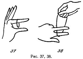 В качестве простейшего счетного приспособления при нахождении числовых значений карт можно использовать пальцы рук. Показывающий при этом держит руки на коленях, а карты (медленно) сдаются кем-нибудь из присутствующих. Пальцы перенумеровываются слева направо от 1 до 10. При появлении карты приподымается или опускается соответствующий палец. Валеты отмечаются перемещением левой руки вперед по ноге или назад, дамы — такими же движениями правой руки. Короли не принимаются во внимание. За мастями можно следить, двигая носками ботинок так, как это объяснялось выше.