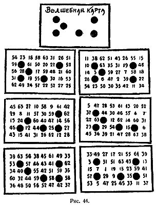 На ближайших страницах мы остановимся на тех фокусах, которые могут показаться более оригинальными или занимательными; при этом мы постараемся проиллюстрировать как можно больше математических принципов, на которых они могут быть основаны.