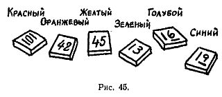 Если при учебном изложении стремятся к возможно большему раскрытию идеи, то здесь для достижения эффективности и занимательности, наоборот, как можно хитрее маскируют суть дела. Именно поэтому вместо отвлеченных чисел так часто используются различные предметы или наборы предметов, связанные с числами: домино, спички, часы, календарь, монеты и даже карты (разумеется, такое использование карт не имеет ничего общего с бессмысленным времяпровождением азартных игроков; как указывает автор, здесь карты рассматриваются тросто как одинаковые предметы, которые удобно считать; имеющиеся на них изображения не играют при этом никакой роли-»).