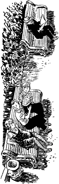 Около спорщиков, на этой же скамейке или на другой, обычно сидит большеглазая девочка. Если обсуждение деловое и мирное, она не обращает на мальчишек внимания, смотрит в небо, болтает ногами и вслух бормочет свои мысли: