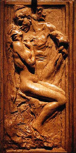 Тема страсти мужчины и женщины волновала Родена всегда. Он считал, что искренность и чувства составляют истинный смысл существования художника. Мастер с радостью погружался в мир интимных отношений как в жизни, так и в творчестве. В этой работе использован его излюбленный мотив — поцелуй и объятия любовников. Сюжет давал формальную широту поисков: ваятель варьировал позы, ракурсы, настроение пары, закрывал ее от окружающего мира или, наоборот, будто сливал с природой. Обращают на себя внимание удивительная свобода лепки, абсолютная точность перспективных сокращений. Торс мужчины, сделанный двумя-тремя энергичными моделировками, производит впечатление внутреннего трепета, силы и движения. При кажущейся легкости манеры исполнения передать ощущение свежести и динамики в рельефе чрезвычайно трудно, история скульптуры знает мало таких примеров.