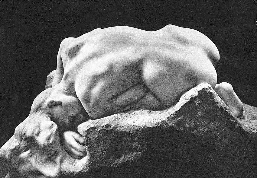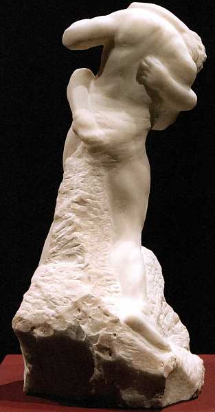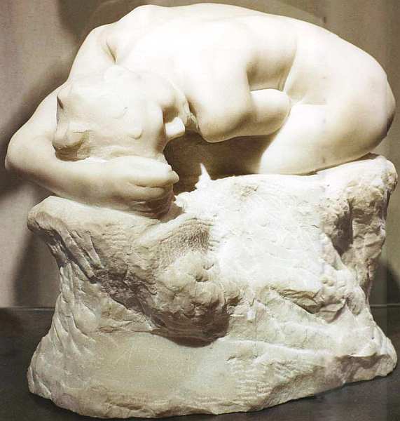 С подросткового возраста Роден посещал Лувр, штудировал и перерисовывал шедевры живописи и скульптуры, впитывая классическое искусство. Он особенно любил и почитал творчество великого Микеланджело. Французский мастер считал, что итальянец как никто другой мог оживить камень. В произведениях этого титана Возрождения, однако, при всей пластической виртуозности обработки оставалось ощущение сохранения первоосновы любого изваяния, его рождения из недр инертной массы. Микеланджело говорил, что «хороши только те скульптуры, у которых, если их спустить с вершины горы, ничто не будет отбито, а если что-то и отколется, значит, это было лишним». По названному принципу и сделана представленная статуя. Сюжет не так важен для Родена, он — всего лишь предлог, чтобы создать одухотворенный образ, изобразить прекрасную обнаженную плоть. В разговорах с ценителями искусства он утверждал: «Формы человеческого существа непременно несут душевные эмоции. Тело всегда выражает дух, оболочкой которого оно является. И для того, кто умеет видеть, в наготе открывается наиболее глубокий смысл». Анатомически изображение очень точное, тем не менее оно потрясает не натуралистичностью, а страданием.