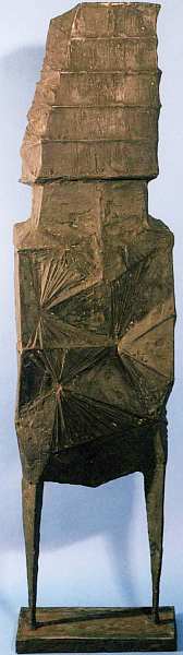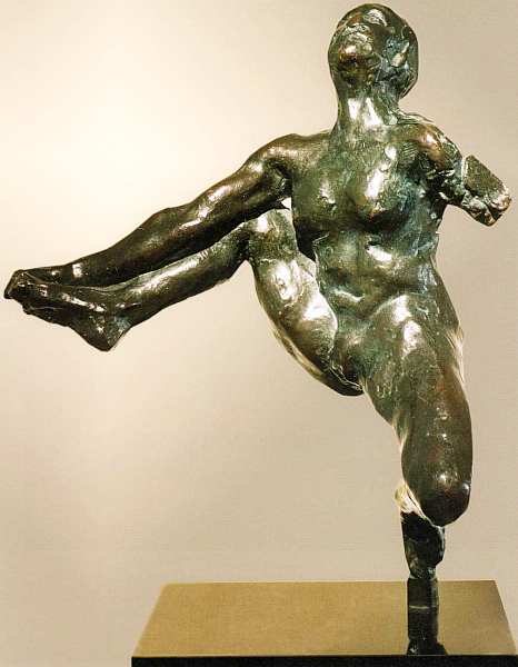 Эта работа выбивается из ряда произведений, которые рассматриваются в альбоме. Она принадлежит мастеру совсем другого поколения и творческой направленности — англичанину Линну Чедвику. Можно сравнить разные подходы к задачам пластики: там, где у Родена мягкость линий, важность анатомически верно переданных движений и чувственность словно дышащей плотской оболочки, у автора второй половины XX столетия — абстрактный силуэт, намеренный отказ от эмоциональной трактовки плоти, условность и идолоподобность. Во-первых, образ отражает интерес к доисторическому и примитивному искусству (Киклад и стран Африки), когда первобытный человек изготавливал таких истуканов в ритуальных, магических целях. Чедвик душевно стремится вернуться к тем, по-своему грандиозным временам. Во-вторых, в отречении от антропоморфности слышится социальная критика: реализм в изображении человека во все века сопровождался кровавыми войнами и социальной несправедливостью.