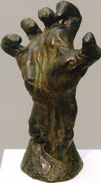 Особое внимание Роден уделял ежедневной практике даже после того, как достиг всемирной славы, признания и стал пользоваться непререкаемым авторитетом среди многочисленных учеников. Он зарисовывал, лепил из глины как отдельные части тела, так и фигуры в самых разнообразных ракурсах. Скорее всего, перед зрителем — чисто анатомическая штудия, Роден изваял «когтистую руку» — так называют сжатые подобным образом пальцы анатомы. Возможно, данное упражнение нужно было мастеру, чтобы основательно изучить движение и натянутость сухожилий для таких произведений, как «Рука Бога» (1896), оно представлено в музее.