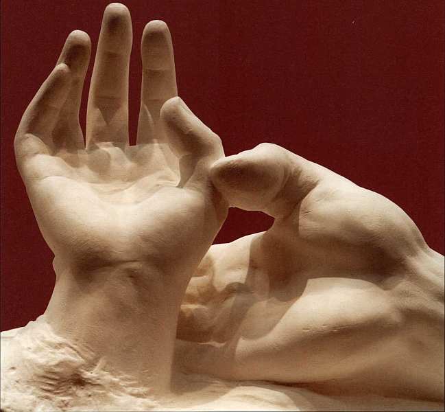 Запечатленный жест обретает особую глубину и смысл благодаря авторскому названию — «Руки возлюбленных». Любовная тематика, безусловно, нашла самое полное отображение в творчестве Родена. Каждый зритель, глядя на эту работу, представляет что-то свое: диалог пары, драму ушедшего чувства, незабываемые моменты жизни. Стихотворение «Экстаз» Джона Донна, классика поэзии XVII века, отражает главную мысль скульптора: