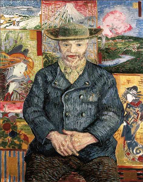 Этот прекрасный портрет владельца магазина художественных принадлежностей, папаши Танги, был куплен Огюстом Роденом у его вдовы. Ван Гог создал три версии картины, данная — самая удачная, она полно отражает особенности его стиля. Мастер только-только прибыл в Париж, мировую культурную столицу, после тяжелых лет жизни в родной Голландии. Он тесно сошелся с импрессионистами и попал под сильное влияние модного тогда японского искусства. Эти два факта отчетливо видны в полотне: яркий, сочный колорит импрессионизма, мотивы живописи Страны восходящего солнца, характерное для художника смелое сочетание цветов и обманчиво наивная, почти детская манера рисовать.