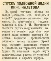 6 Глинка С. Подводная лодка г. Налетова // Новое время. Иллюстрир. прилож 1905, 10 авг. № 574