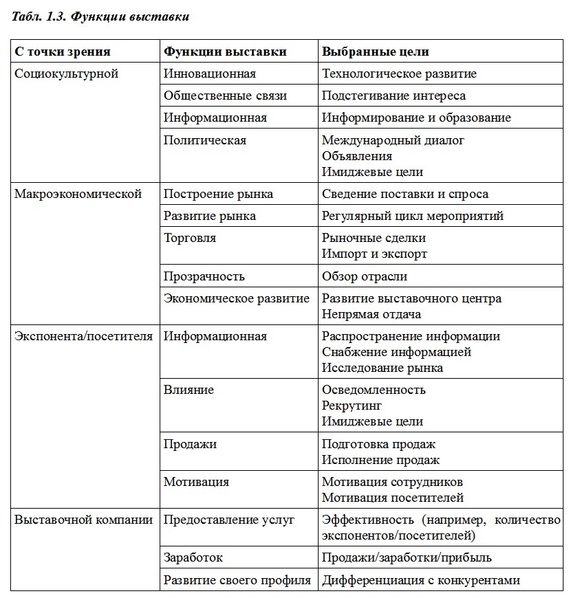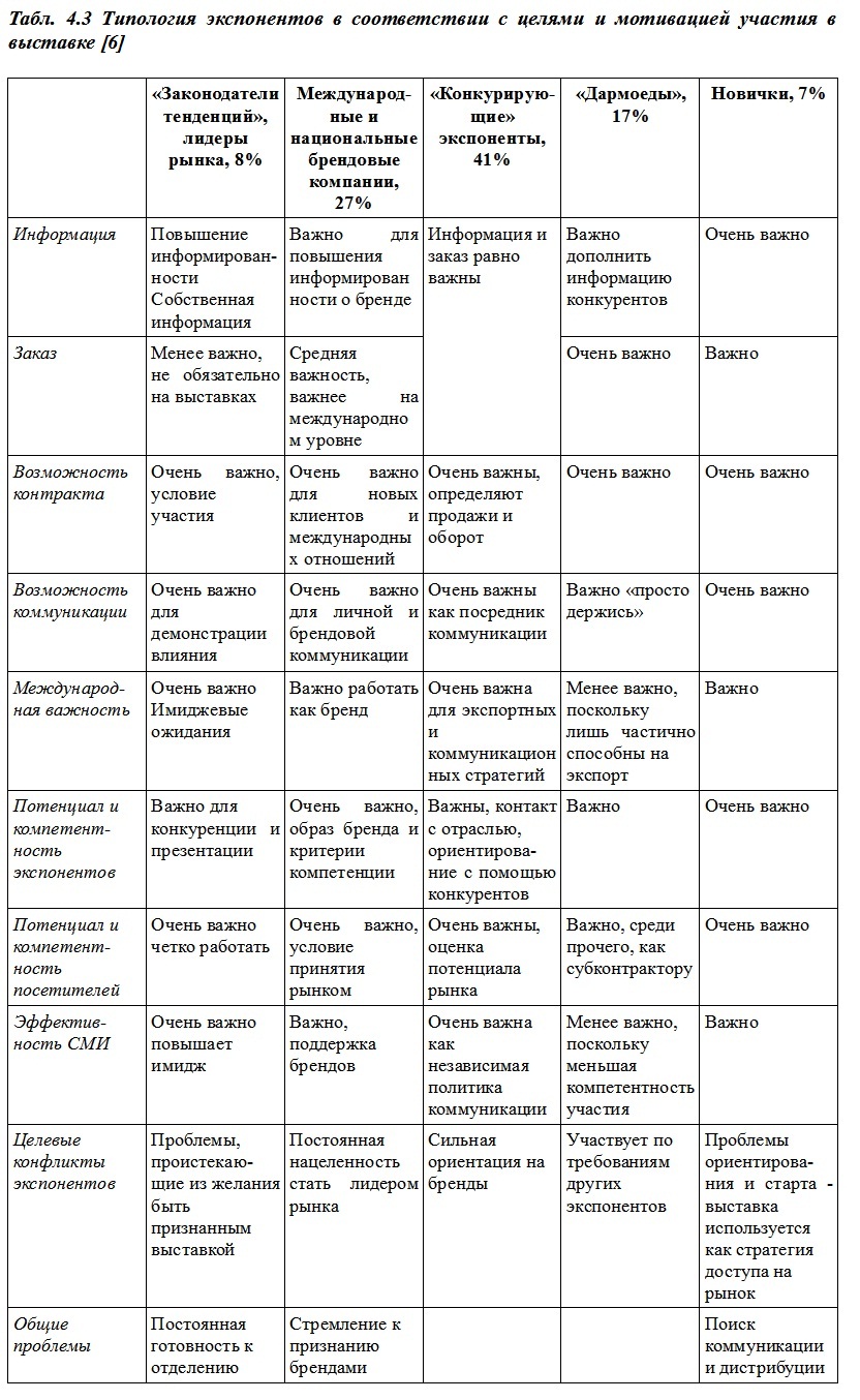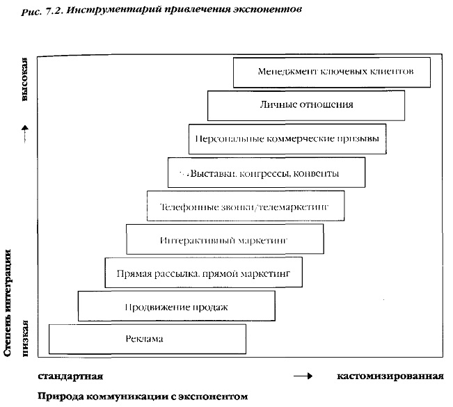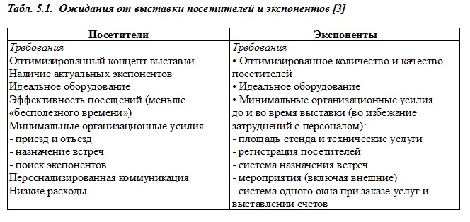 Нужно отметить, что в современной выставочной индустрии пространственные и временные характеристики выставки размываются. усложнение выставочного продукта, его интеграция с другими информационными технологиями, до- и послевыставочная маркетинговая работа выставочных операторов с клиентами приводят к тому, что понятие выставки замещается понятием интегрированной маркетинговой коммуникации, где собственно экспозиция является лишь частью. Более подробно об этом будет идти речь в следующих главах.