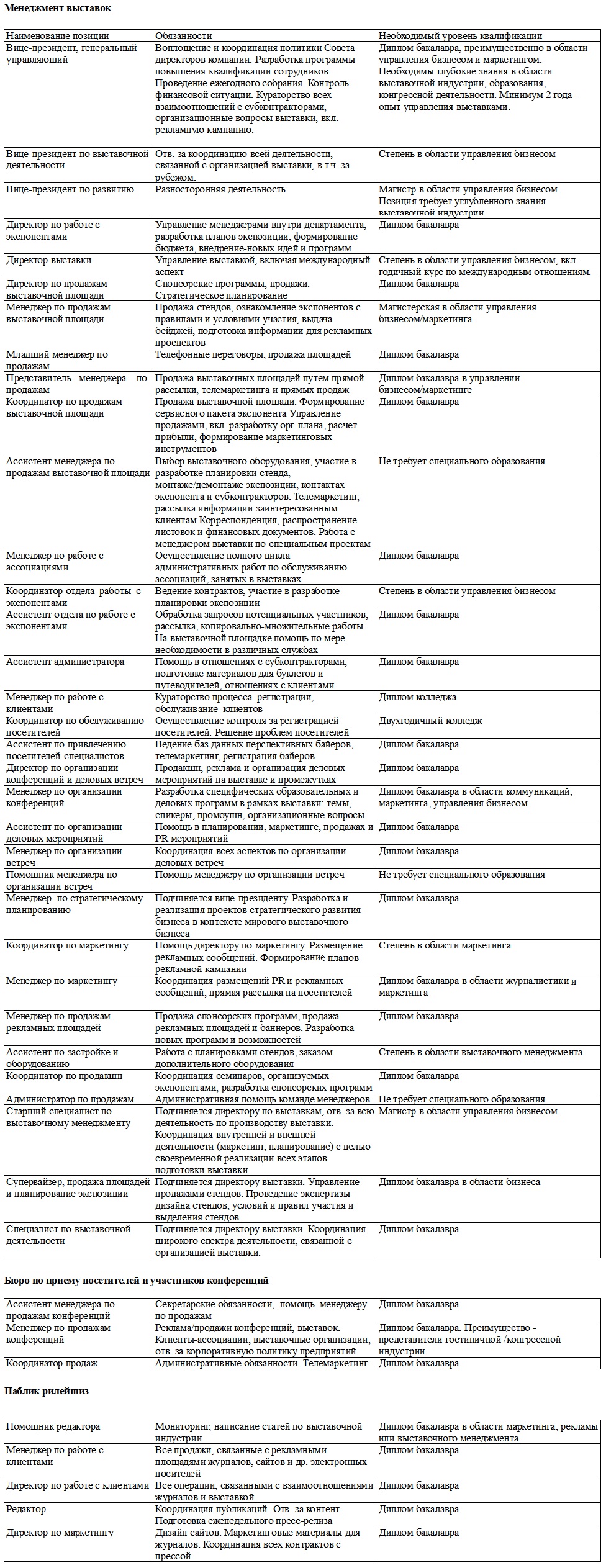 «Выставочный менеджмент» программы МВА,
