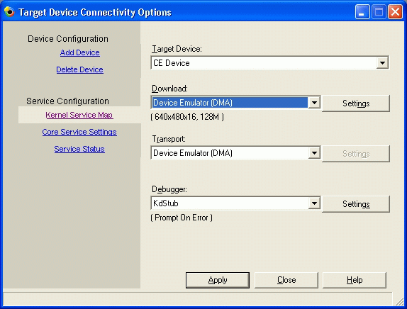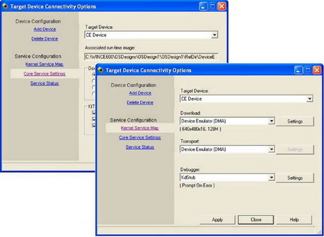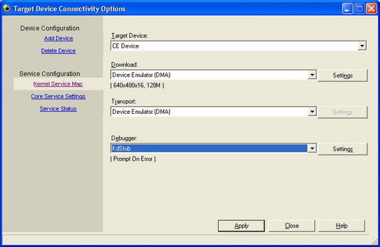 Kernel Debugger The kernel debugger integrates functionality required to configure a connection to a target device and download a run-time image to the target device. It allows the debugging of the OS, abbreviate drivers, and applications.