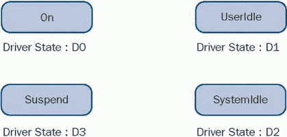 Power Manager Controls the power consumption of the system by assigning a power state between D0 (fully on) and D4 (fully off) to the system as a whole and to individual drivers. It coordinates transitions between these states based on user and system activity, as well as specified requirements.