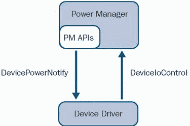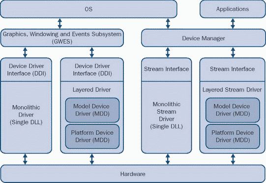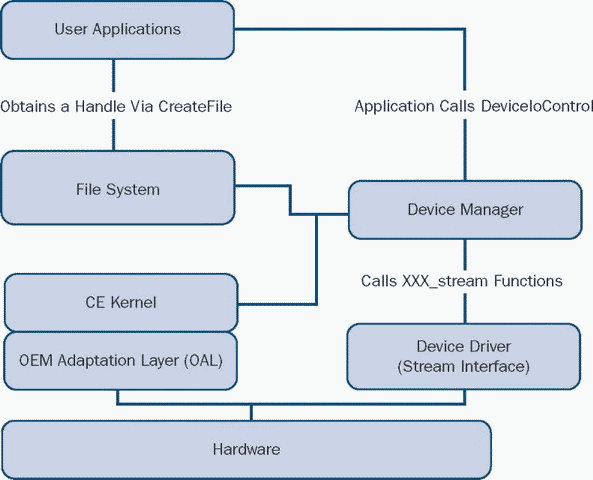 Windows Embedded CE device drivers are DLLs that adhere to a well-known API so that the operating system can load them. Native CE drivers interface with GWES while stream drivers interface with Device Manager. Stream drivers implement the stream interface API so that their resources can be exposed as special file system resources. Applications can use the standard file system APIs to interact with these drivers. The stream interface API also includes support for IOCTL handlers, which come in handy if you want to integrate a driver with Power Manager. For example, Power Manager calls XXX_IOControl with an IOControl code of IOCTL_POWER_SET passing in the requested device power state.