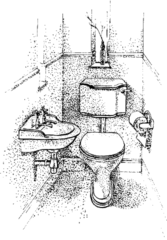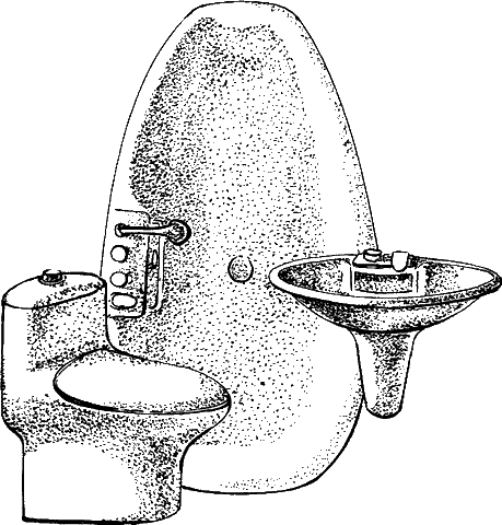 Совмещенный санузел, как следует из названия, представляет собой комнату, приспособленную для пользования и унитазом, и ванной (или душем), и другим сантехническим оборудованием (рис. 3).