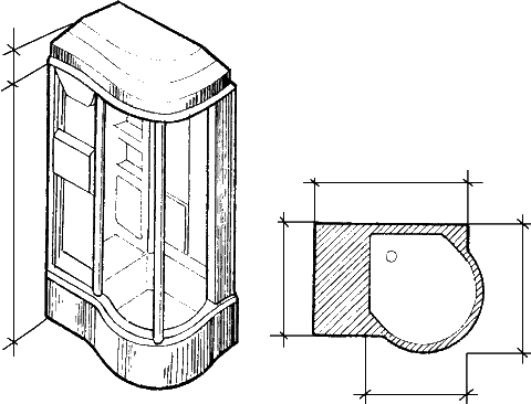 Рис. 13. Угловая ванна: а – общий вид; б – вид сверху (размеры даны в мм)