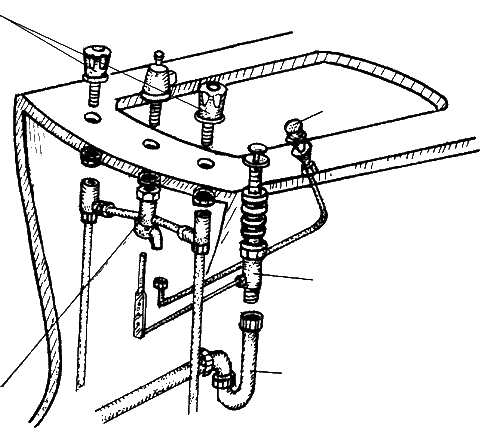 Любая ванна имеет выпуск, соединенный с канализацией, а также перелив – отверстие для стока лишней воды, предохраняющее ее от переполнения. Через различные сантехнические устройства (форсунки, смесители) в ванну подается горячая и холодная вода из водопровода.