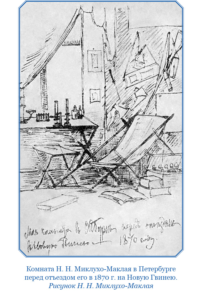 Николай Николаевич Миклухо-Маклай родился в 1846 г., воспитывался во 2-й С.-Петербургской гимназии. Слушал полгода лекции в С.-Петербургском университете, но выехал в 1863 г. за границу, где поступил stud. philos. в Гейдельбергский университет, где пробыл около двух лет; потом приехал в Лейпциг, а оттуда в Иену, где перешел на медицинский факультет и, занимаясь специально зоологией, сделался ассистентом при Зоологическом институте.